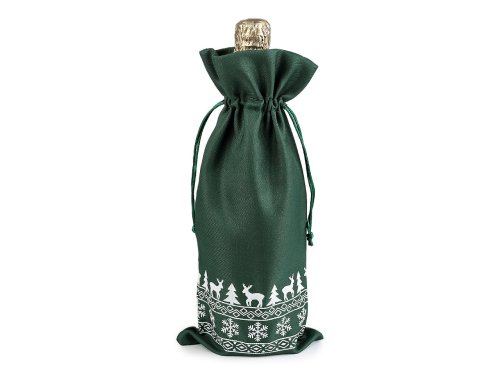 Vianočné darčekové vrecúško je z oboch strán ozdobené potlačou sobov, stromčekov a vločiek. Je určený na zabalenie fliaš a iných podlhovastých darčekov. Vrecko je dostatočne vysoké, či už sa rozhodnete pre darček s alkoholom alebo s domácou limonádou, ušetrí vám čas pri balení. Sťahuje sa pomocou okrúhlych saténových šnúrok, darčeku dodá osobné kúzlo a pôvab. Fľaša nie je súčasťou vrecka.