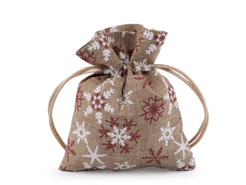 Malé darčekové vrecúško zdobí potlač vločiek. Ľahko sa uzatvára pomocou dvoch sťahovacích šnúrok. Je pevný. Môžete ho použiť na zabalenie drobných darčekov, je krásny ako dekorácia na Vianoce a využijete ho aj na výrobu adventných kalendárov.