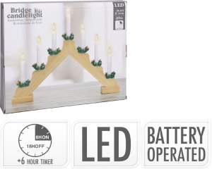 Vianočné dekorácie LED svietnik prírodný stojan 395X50X310MM, farba LED: teplá biela, napájanie 2 x AA batérie, časovač