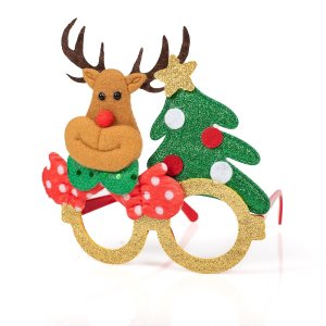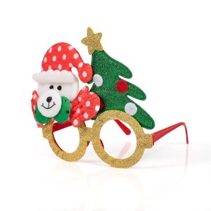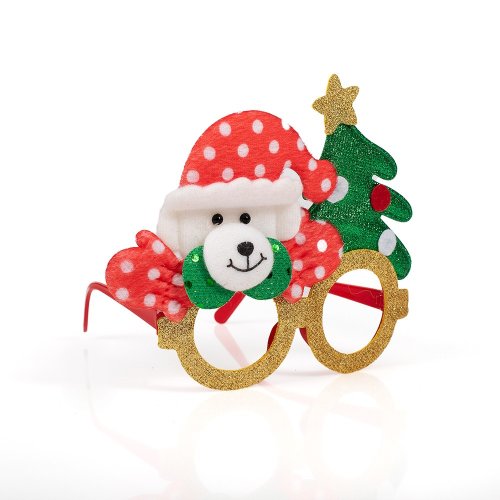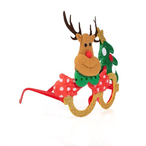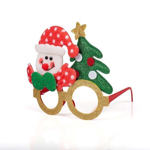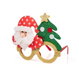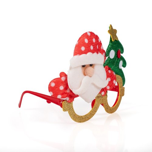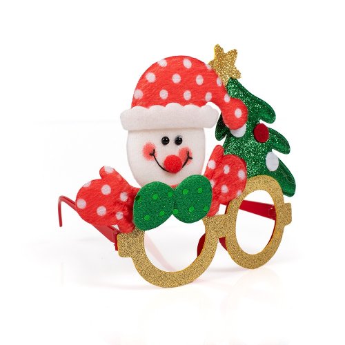 Vianočné okuliare s trblietkami a dekoráciami – sobom, Santom, psíkom a snehuliakom. Veľkosť okuliarov 17×14 cm