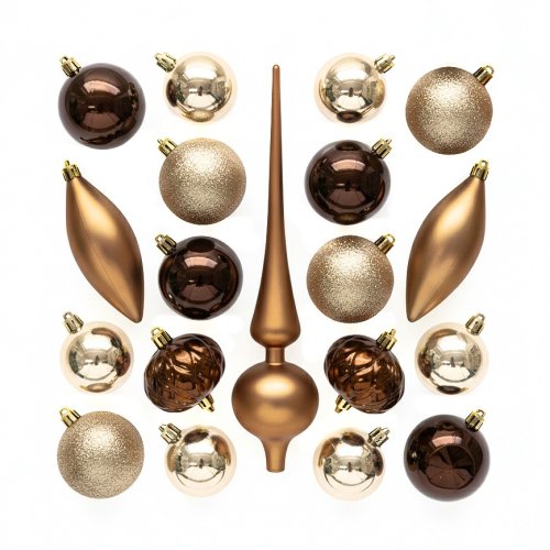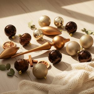 Táto elegantná sada vianočných ozdôb v zlatej farbe je ideálna na ozdobenie vášho vianočného stromčeka. Vďaka rôznym tvarom a povrchovým úpravám pridá vášmu stromčeku štýl a lesk.