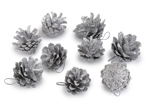 Dekoračné šišky môžete vďaka pútku zavesiť na stromček, vence alebo vetvičky vo váze. Sú prírodné, doplnené metalickou farbou, ktorá im dodáva elegantný vzhľad.