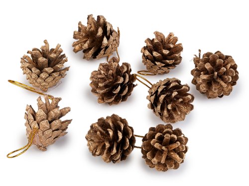 Dekoračné šišky môžete vďaka pútku zavesiť na stromček, vence alebo vetvičky vo váze. Sú prírodné, doplnené metalickou farbou, ktorá im dodáva elegantný vzhľad.