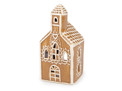 Keramický svietnik v tvare chalúpky či kostola vnesie do vášho domova príjemnú a relaxačnú atmosféru. Svojim dizajnom imituje perník. Je vhodný na klasické čajové alebo LED čajové sviečky. Perfektne vynikne ako ozdoba vianočného stola, okenného parapetu či ako súčasť sviatočného aranžmánu.