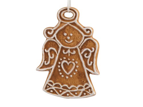 Dekoračný perníček v podobe anjelika vyniká bielym dekorom a hravými detailmi. Je jednostranne zdobený. Vďaka pútku ho môžete zavesiť na vianočný stromček, vence alebo na stenu.