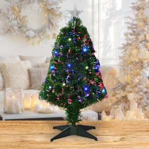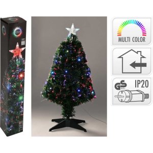 Dekoratívny vianočný stromček s optickým vláknom a farebným LED osvetlením, vhodný na interiérové použitie a vytvorenie sviatočnej atmosféry.