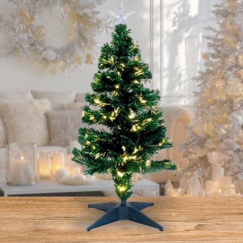 Veľký a elegantný vianočný stromček s optickým vláknom, vybavený teplými bielymi LED diódami pre útulnú sviatočnú atmosféru.
