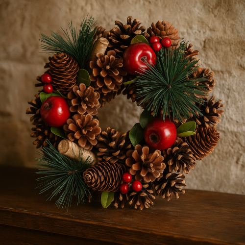 Veniec s borovicovými šiškami a bobuľami