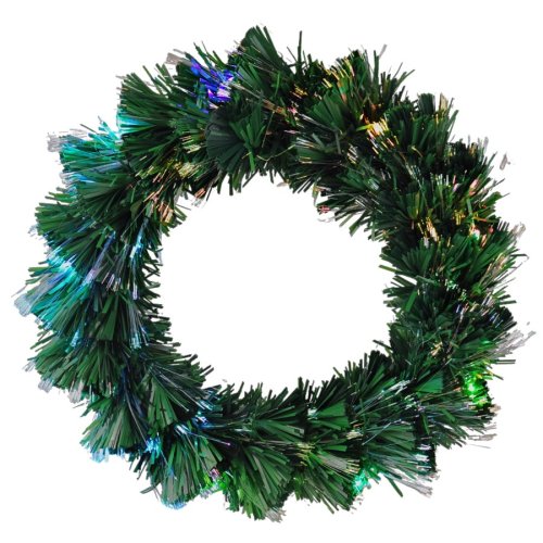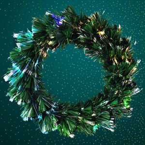 Dekoratívny veniec s optickým vláknom a farebným LED osvetlením, ideálny pre interiérové použitie a sviatočnú dekoráciu.