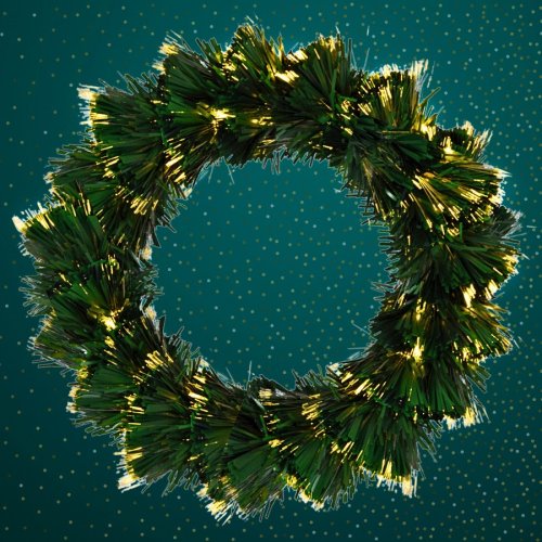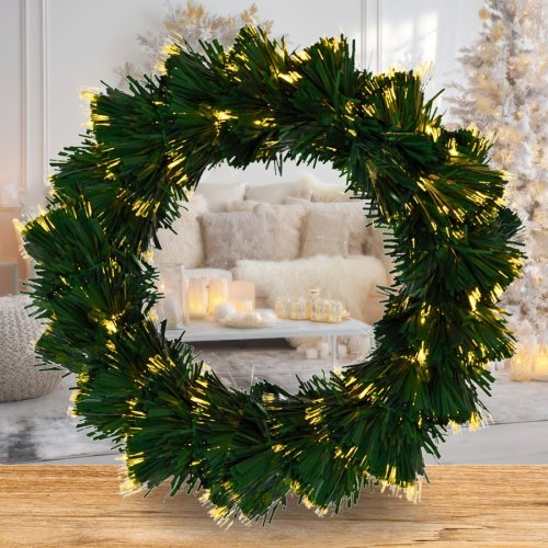 Štýlový vianočný veniec s optickým vláknom, ideálny na dekoráciu interiéru s jemným teplým svetlom.