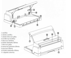Elegantný kancelársky viazací stroj uľahčí výrobu publikácií s kovovými chrbtami. Je vybavený pákou na dierovanie a roztiahnutie krúžku, meradlom veľkosti chrbta a piatimi vyraditeľnými nožmi. Naraz presekne až 34 otvorov do maximálneho počtu 15 listov. Bez problémov zviaže až 120 listov dokumentu.