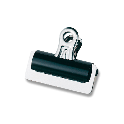 Kancelársky extra silný klip. Otvor na zavesenie. Čiernostrieborný, rôzne veľkosti. Vnútorný priemer oka 20 mm.
