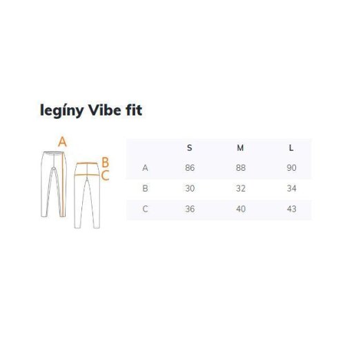 Dámske športové legíny Vibe Fit majú vyšší pás so širokou rebrovanou gumou. Minimálny počet švov je u týchto legín zárukou pohodlia a voľnosti pri pohybe. Legíny Vibe Fit sú v ombrej tyrkysovej variante. Na lampasoch a pod zadkom sú na tkanine zosilnené zóny, ktoré slúžia na vytvorenie push-up efektu. Pokiaľ chcete mať svoj cvičebný outfit kompletný, odporúčame k legínam zakúpiť športovú podprsenku Motion Bra. Zloženie: 54% nylon, 34% polyester, 12% spandex. Perte v práčke s podobnými farbami na 30 °C. Rozmery: Veľkosť S dĺžka: 86 cm šírka pása: 30 cm šírka bokov: 36 cm Veľkosť M dĺžka: 88 cm šírka pása: 32 cm šírka bokov: 40 cm Veľkosť L dĺžka: 90 cm šírka pása: 34 cm šírka bokov: 43 cm