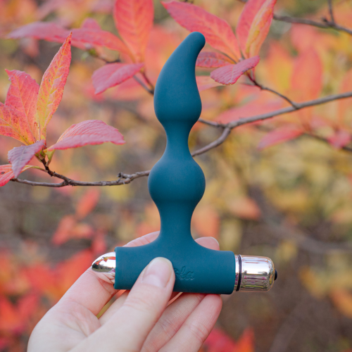 Análny silikónový vibrátor v netradičnom tvare s vibračnou patrónou.