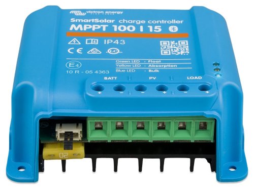 Robustný a rýchly MPPT regulátor pre náročné podmienky s napätím panelov až 100 V , maximálny nabíjací prúd 15 A. Batéria 12/24 V , FV max. 220/440 Wp . Vstavané Bluetooth a VE.direct rozhranie.