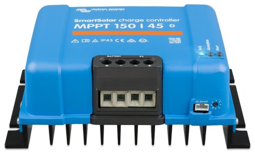 Robustný a rýchly MPPT regulátor pre náročné podmienky s napätím panelov až 150 V , maximálny nabíjací prúd 45 A. Batéria 12/24/48 V , FV max. 650/1300/2600 Wp . Vstavané Bluetooth a VE.direct rozhranie.