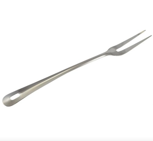 Celonerezová servírovacia vidlica s očkom na zavesenie, dĺžka celkom 35 cm. Vhodná na varenie, grilovanie a pod. Vhodná do umývačky riadu. EAN 5999558570682