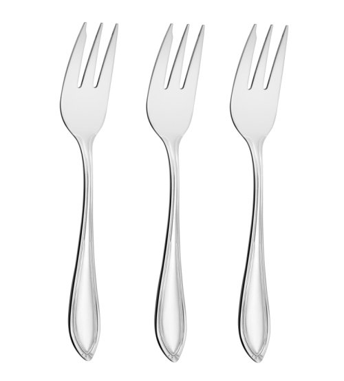 Súprava troch kusov dezertných vidličiek CS Solingen BAGUETTE zaujme kvalitným spracovaním z nerezovej ocele vo vysokej kvalite 18/10. Dezertné vidličky sú vhodné na múčniky či predjedlá a to na každodenné použitie. Povrch je lesklý, so súmerným zdobením na rukoväti. Dĺžka každej vidličky je 14 cm. - ušľachtilá nerezová oceľ 18/10 - ergonomické tvarovanie - zdobenie rukoväte - odolné voči korózii, odreniu a potravinovým kyselinám - vhodné do umývačky riadu - v sade