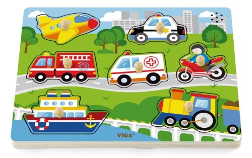 Drevené zvukové puzzle s dopravnými prostriedkami.