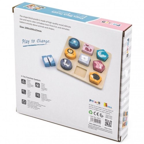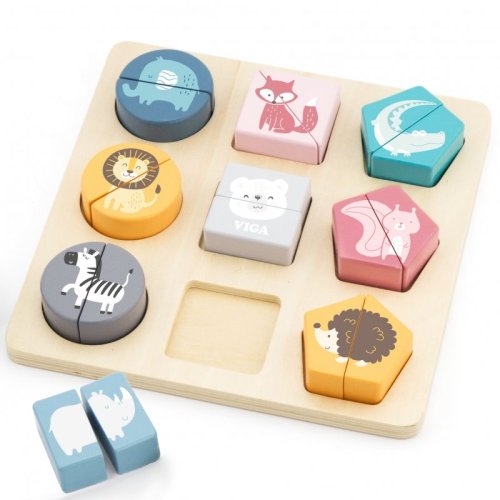 Drevená vkladačka Zvieratá - Viga: - učia, ako riešiť problémy - podporuje kreatívne myslenie - podporuje a vyvíja jemnú motoriku - rozvíja predstavivosť - podporuje zmyslový vývoj dieťaťa Pomocou tejto vkladačky sa deti môžu učiť spoznávať jednotlivé zvieratká. Sada obsahuje 9 dielikov s obrázkom zvierat a drevenou podložkou pre ich pokladku . Dieliky sú vyrobené z vysoko kvalitného dreva, vďaka čomu sú odolné voči poškodeniu. Hračka je plne ekologická a bezpečná. Vhodné pre deti od 18 mesiacov. Viga je značka založená v roku 2003, ale už existuje vo viac ako 60 krajinách po celom svete. Ich inovatívne nápady boli uznané min. v Európe, USA, vzdialenej Austrálii a Japonsku. Zakladatelia spoločnosti upozornili na výsledky výskumu naznačujúce vzťah medzi hrou a učením v prvých rokoch vývoja dieťaťa. Na pomoc rodičom a vzdelávacím inštitúciám pri výchove detí a ich záchrane z virtuálneho sveta, ktorý môže do značnej miery narušiť realitu, ponúka výrobca inovatívny rad prírodných materiálov získaných počas ekologických výrobných procesov. Bezpečnosť a kvalita drevených výrobkov je pre Vigu prioritou.