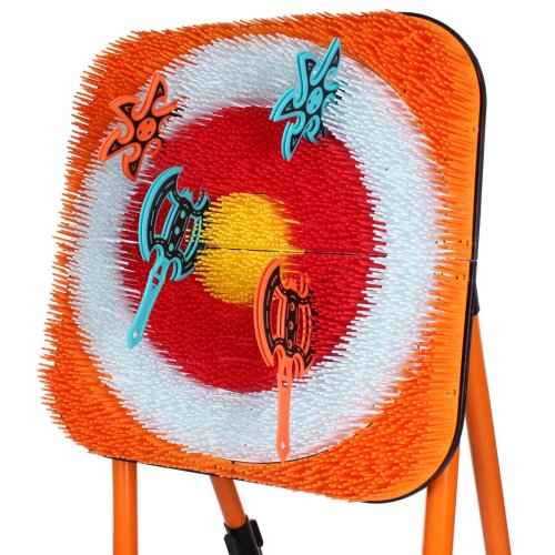 Pripravte sa na poriadnu dávku zábavy a zdravého súperenia s hrou Merco Viking Axe! Tento plastový terč so skladacou konštrukciou je ideálny na vytvorenie napínavej súťaže o najväčšiu presnosť hodu doma, na záhrade aj na vonkajších akciách. Súčasťou balenia je osem plastových sekeriek a osem vrhacích hviezdic, vďaka ktorým si hru môže užiť viac hráčov naraz. Zloženie je jednoduché a rýchle. Plastové sekerky aj hviezdice sú navrhnuté tak, aby dobre priľnuli k terču. Hra podporuje koordináciu, sústredenie a presnosť. - materiál: plast - súčasť balenia: skladacia konštrukcia s terčom, 8 sekeriek, 8 hviezdic - celkové rozmery po zložení: 148 x 68 x 75 cm (výška x šírka x hĺbka) - rozmery terča: 60 x 60 x 6 cm - rozmery sekery: 23,5 x 15 x 15 hviezdice: 16 x 1 cm - hmotnosť hviezdice: cca 70 g - jednoduchá montáž - rozmery balenia: 64 x 34 x 30 cm - hmotnosť balenia: cca 11,5 kg - Nie je vhodné pre deti mladšie ako 6 rokov, používajte vždy pod dohľadom dospelej a zodpovednej osoby!
