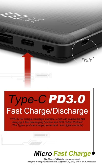 Podpora rýchlonabíjania PD 3.0 a QC 4.0+ Powerbanka Viking PN-962PD 20000?mAh podporuje moderné technológie rýchleho nabíjania PD 3.0 (Power Delivery) a QC 4.0+ (Quick Charge), vďaka ktorým nabíjate kompatibilné zariadenie oveľa rýchlejšie ako bežné? krátku dobu. Funguje ako s Androidom, tak s Apple zariadeniami, pokiaľ podporujú rýchle nabíjanie.