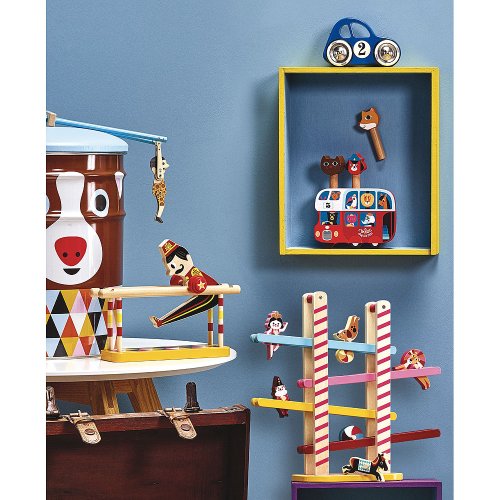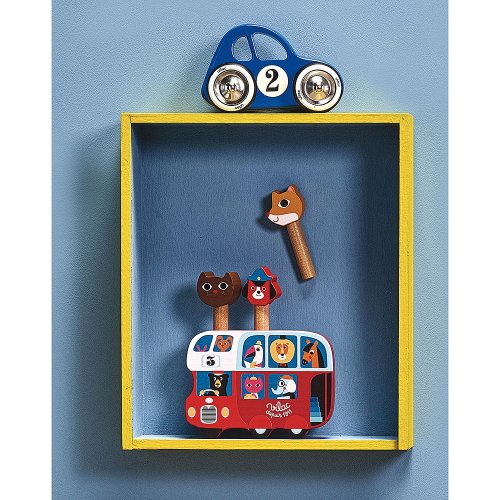Modré autíčko vyrobené z lakovaného dreva s kovovými pogumovanými kolesami. Autíčko je špeciálne v tom, že zatáča doľava a doprava vďaka špeciálnemu riešeniu nápravy. Vyrobené vo Francúzsku. Hlavné vlastnosti: vyrobené vo Francúzsku