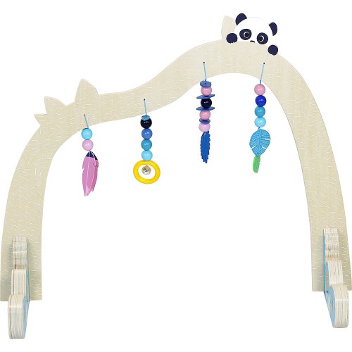 Prebuďte zmysly dieťaťa s touto krásnou drevenou hrazdičkou. Z veľkej časti je z prírodného dreva, má ale aj farebné prvky. Z hrazdičky visí korálky s rolničkou, lístočkami, pierkami. Vhodné od narodenia. Hlavné vlastnosti: prehlbuje zmyslové vnímanie jemnej farby pevná a stabilná konštrukcia