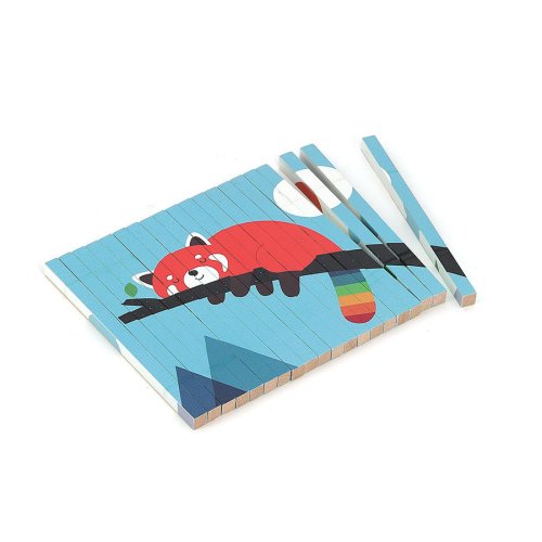 Nakloním sa doľava a vidím pandu červenú! Nakloním sa doprava a objaví sa ľadový medveď! Celkom štyri rôzne ilustrácie sa ukrývajú v jednej chytrej skladačke – panda červená, ľadový medveď, krokodíl a panda. Táto 4D skladačka s motívom zvieratiek, ktoré ilustroval známy umelec Andy Westface, ponúka deťom od 5 rokov jedinečný herný zážitok. Vďaka dreveným tyčinkám, ktoré sú potlačené zo štyroch strán, sa podľa uhla pohľadu objavujú rôzne obrázky. Tento šikovný a nápaditý dizajn nielen zaujme, ale pomáha dieťaťu rozvíjať logické myslenie a jemnú motoriku. Súčasťou je aj vizuálna značka, ktorá deťom pomáha skladačku správne zložiť. Skvelá voľba pre zvedavé deti, ktoré sa rady učia hrou! Zasúvaním tyčiniek do rámčeka si deti zlepšujú koordináciu ruka-oko, presnosť pohybu aj silu v prstoch. Tieto zručnosti sú dôležité nielen pre hry, ale aj pre každodenné činnosti, ako je písanie alebo kreslenie. Každý krok pri skladaní si vyžaduje pozornosť a starostlivosť, takže sa dieťa učí trpezlivosti a sústredeniu. Vďaka poetickému a farebnému štýlu ilustrácií Andyho Westface deti objavujú nielen zvieratká, ale aj nové príbehy. Môžu si samy vymýšľať scénky a poviedky podľa toho, čo vidia. Hra tak rozvíja nielen logické myslenie, ale aj jazyk, slovnú zásobu a predstavivosť. Skladačka je preto skvelou kombináciou vzdelávania a zábavy a je ideálna pre zmysluplné trávenie času s rodičmi aj kamarátmi. Obsah balenia•1 drevený stojan•20 drevených tyčiniek potlačených z každej zo 4 strán Hlavné vlastnosti•originálny dizajn v 4 rozmeroch
