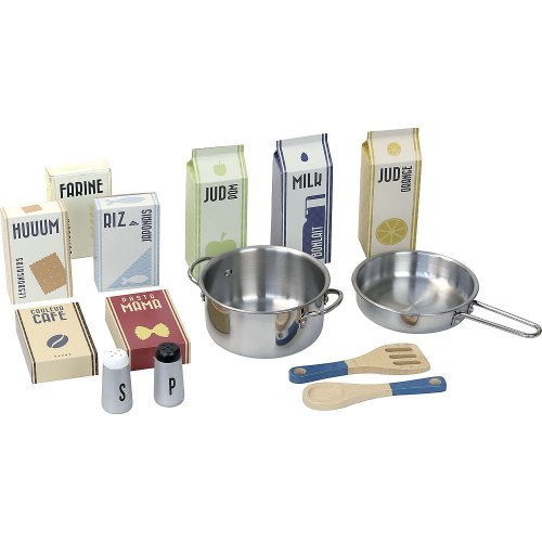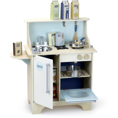 Pokiaľ máte doma nadšených pomocníkov, určite sa im bude páčiť táto kuchynka v modrej farbe. Možno sa vďaka tejto hračke deti v budúcnosti stanú špičkovými kuchármi a kuchárkami. V balení okrem čiapky a zástery šéfkuchára nájdete aj soľničku a koreničku, varešku, hrniec, panvicu a 8 tetrapakov s potravinami. Kuchynka má samozrejme drez, rúru, sporák s klikajúcimi ciferníkmi a mnoho úložného priestoru. Po rozbalení je nutné zložiť. Vhodné od 3 rokov. Hlavné vlastnosti: vrátane 24 ks doplnkovpevná drevená konštrukciafunkčné a odnímateľné prvky