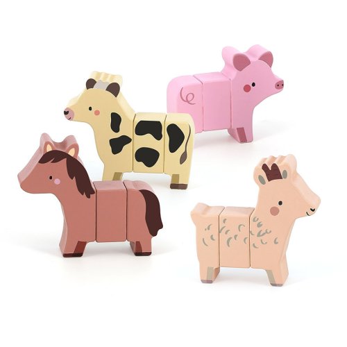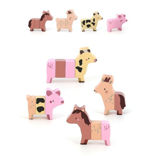 Ako by vyzeral koníček skrížený s prasiatkom alebo koza s koníkom? Zábavná drevená magnetická hračka prebúdza detskú fantáziu aj jemnú motoriku. Každé zvieratko sa skladá z 3 dielikov, ktoré sú vzájomne kombinovateľné. Deti si tak môžu vytvárať zvieratká, či už podľa skutočnosti alebo podľa vlastnej fantázie, môžu vymýšľať príbehy a zoznamovať sa so svetom zvierat zábavným a hravým spôsobom. Hračka je navrhnutá tak, aby podporovala slobodnú hru, rozvoj tvorivosti a radosť z objavovania. Pri manipulácii s magnetickými časťami si deti precvičujú koordináciu ruka-oko, jemnú motoriku aj logické myslenie. Vďaka drevenému prevedeniu je navyše hračka príjemná na dotyk a odolná. Je to ideálny spoločník pre dlhé hodiny tvorivej zábavy. Zvieratká sú ilustrované výtvarníčkou Sarah Betz, ktorá hračke vtlačila poetický a nežný štýl inšpirovaný prírodou. Jej kresby dodávajú hračke kúzlo, ktoré si získa srdcia detí i rodičov. Hlavné vlastnosti: 12 dielikov, 4 zvieratká – kravička, koníček, prasiatko, koza inšpirované Montessori pedagogikou podporuje fantáziu rozvíja kreativitu trénuje jemnú motoriku a koordináciu ruka-okorozvíja schopnosť analyzovania, triedenia a skladania vhodné pre deti od 2