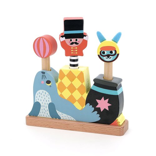 Krásna drevená vystreľovacia hra s ilustráciami umelkyne Michelle Carlslund v motíve cirkusových čísiel. cirkusová základňa, 3 vyskakujúce figúrky podnecuje predstavivosť a nápaditú hru vyrobené ekologicky, šetrne k životnému prostrediu design Michelle Carlslund Cestujte s nami v naivnom a elegantnom svete dánskej ilustrátorky Michelle Carlslund, svete jemných farieb, ktorý je plný roztomilých medveďov a priateľských vtákov. vytlačila doma svoje ilustrácie a skúsila ich predať na dizajnovom trhu, kde sa stretli s veľkým úspechom! Niekoľko obchodíkov chcelo začať predávať jej výtvory, a tak ju napadlo, že by bolo fajn začať podnikať. inšpiruje všetkým okolo nej. Jej výtvory sú nežné a poetické, štylizovaný a detinský štýl, ktorý sa perfektne prelína s hračkami firmy Vilac. jednou vetou.
