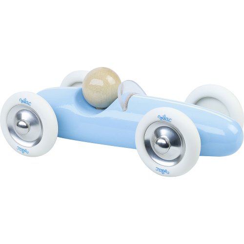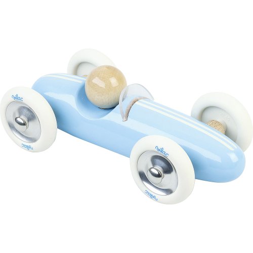 Model svetlo modrého vintage auta zo závodu Grand Prix. Vyrobené z lakovaného dreva vo Francúzsku. Má veľké biele gumové kolesá, ktoré zaisťujú tichý chod na všetkých podlahách. Hlavné vlastnosti: vyrobené vo Francúzsku