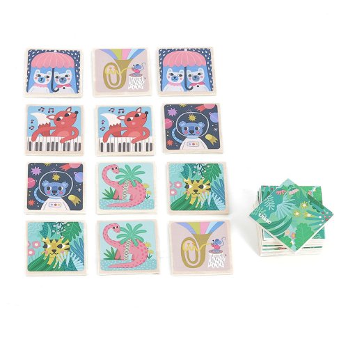 Hľadáte originálne pexeso? Chcete vidieť líšku hrajúcu na klavír, koalu vo hviezdach, dva medvede pod dáždnikom, psa držiaceho lízatko, alebo slona jazdiaceho na kolobežke? Vypravte sa do fantastického sveta zvierat za sprievodu krásnych ilustrácií od Michelle Carlslund. Herné dieliky sú svojimi rozmermi prispôsobené ručičkám najmenších detí. Sú vyrobené z odolného dreva a opatrené kvalitnou potlačou. Pexeso deťom umožní obohatiť si slovnú zásobu, pamäť a zmysel pre pozorovanie. Obsahuje 48 drevených dielikov. Hra je dodávaná v krásne ilustrovanej kartónovej krabičke, ktorá sa na poličke ľahko stane neprehliadnuteľnou dekoráciou. Hlavné vlastnosti: 48 herných dielikov dizajn Michelle Carlslundodolné drevené prevedeniepraktické a atraktívne balenie Cestujte s nami v naivnom a elegantnom svete dánskej ilustrátorky Michelle Carlslund, svete jemných farieb, ktorý je plný roztomilých medveďov a priateľských vtáčikov. V roku 2010, keď Michelle ešte študovala grafický dizajn, vytlačila doma svoje ilustrácie a skúsila ich predať na dizajnovom trhu, kde sa stretli s veľkým úspechom! Niekoľko obchodíkov chcelo začať predávať jej výtvory, a tak jej napadlo, že by bolo fajn začať podnikať. Michelle sa rýchlo stala uznávanou nezávislou ilustrátorkou. Dnes je možné jej ekologické grafické diela zakúpiť po celom svete v dizajnových butikoch, papiernictvach a detských obchodoch. Michelle sa inšpiruje všetkým okolo nej. Jej výtvory sú nežné a poetické, štylizovaný a detinský štýl, ktorý sa perfektne prelína s hračkami firmy Vilac. „Som hranolky milujúca, časová optimistka a tvorkyňa ekologických plagátov a ilustrátorka na voľnej nohe so sídlom v dánskej Kodani,“ to by povedala ilustrátorka Michelle Carlslundová, keby sa mala popísať jednou vetou.