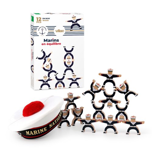 Kto postaví najvyššiu vežu z postavičiek námorníkov? S figúrkami sa zabavíte sami aj v spoločnosti viacerých hráčov, ich pomocou môžete zdokonaľovať jemnú motoriku a sústredenie. Sú vyrezané z odolného masívneho dreva a kúzelne dekorované, ľahko sa preto stanú ozdobou Vašej poličky, alebo stolíka. Vyvinuté v spolupráci s francúzskym námorníctvom. Vyrobené vo Francúzsku. Hlavné vlastnosti: obsahuje 12 hracích figúrokjedinečné spracovanie z masívneho drevavyvinuté v spolupráci s francúzskym námorníctvomvyrobené vo Francúzsku Šťastnú plavbu! To je prianie námorníkom, ktorí vyrážajú na more. Toto praje aj Vilac, so svojou kolekciou, ktorú vyvinuli v spolupráci s francúzskym námorníctvom. Vôňu mora vietor dofúkal až do pohoria Jura, výsledok určite poteší malých námorníkov a námorníčky, tiež dospelých, ktorí sa starajú o svoje vnútorné dieťa!