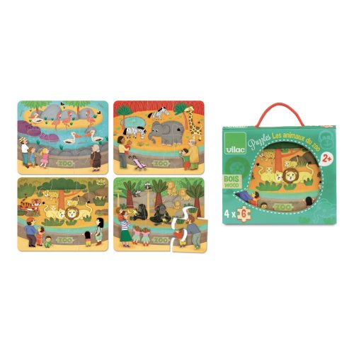 Drevené puzzle so šiestimi dielikmi s tematikou ZOO. Zabalené v peknom drevenom boxe s bavlnenou rukoväťou. Hlavné vlastnosti: 4 puzzle po 6 dielikoch praktický úložný box