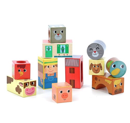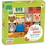 Jedenásť drevených zvukových kociek s motívom farmy. S týmito kockami si deti precvičia motoriku aj zručnosť a zároveň budú objavovať zvuky. Pre deti veľmi pútavá hračka. Hlavné vlastnosti: edukatívne senzorické kocky obsahuje 11 kociek