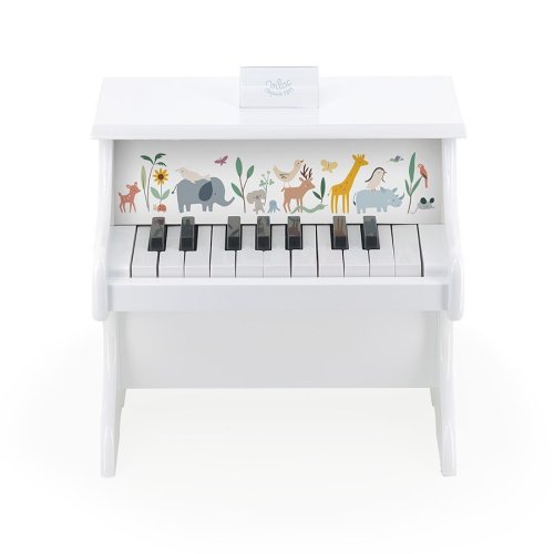 Kto ako malý nesníval o tom stať sa virtuózom? Drevené piáno s jemnými ilustráciami od Sarah Betz otvára deťom od 3 rokov dvere do sveta hudby hravou a prirodzenou cestou . Piáno je vyrobené z masívneho dreva, má veľkosť ideálnu pre malé ručičky a je dodávané s 10 notami, ktoré deti zoznámia so základmi hudby. Bez potreby elektroniky umožňuje vytvárať melódie, objavovať rytmus a zažívať radosť z hry. Táto hudobná hračka rozvíja jemnú motoriku, koordináciu ruka-oko, posilňuje prsty a pomáha budovať obratnosť - zručnosti dôležité aj pre písanie alebo ďalšie kreatívne činnosti. Hranie na klávesy navyše pomáha chápať vzťahy medzi akciou a zvukom, čo podporuje logické myslenie aj trpezlivosť. Piáno vydáva krásne zvuky a rozvíja vzťah k hudbe, ale nie je to profesionálny hudobný nástroj. Hračka nie je dokonale naladená, slúži predovšetkým na zábavu. A ako bonus? Vďaka elegantnému lesklému laku sa piáno stane aj štýlovým doplnkom detskej izby alebo obýva ku. Hlavné vlastnosti: piano s 18 klávesmi prehlbuje lásku k hudbe a rytmiku rozvíja jemnú motoriku a kreativitu stimulácia kreativity design Sarah Betzkvalitné spracovanie