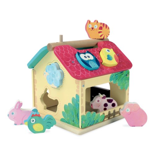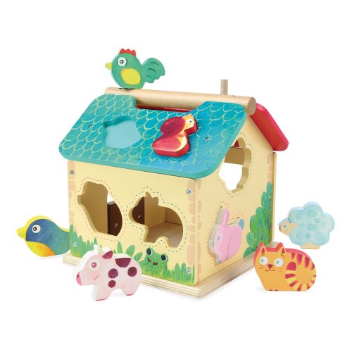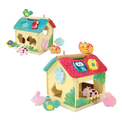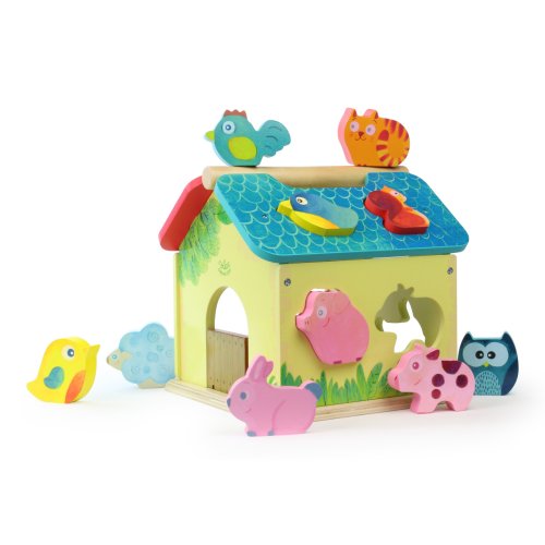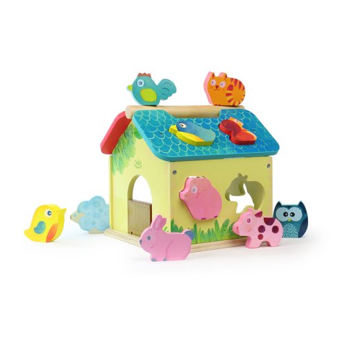 Drevená farebná farma s vkladacími otvormi pre každé zo zvieratiek. Deti sa pri hre učia spoznávať tvary, farby a zvieratá, trénujú si jemnú motoriku. Obsahuje desať drevených zvieratiek. Hlavné vlastnosti: obsahuje 1 domček a 10 zvieratiek trénuje jemnú motoriku detí