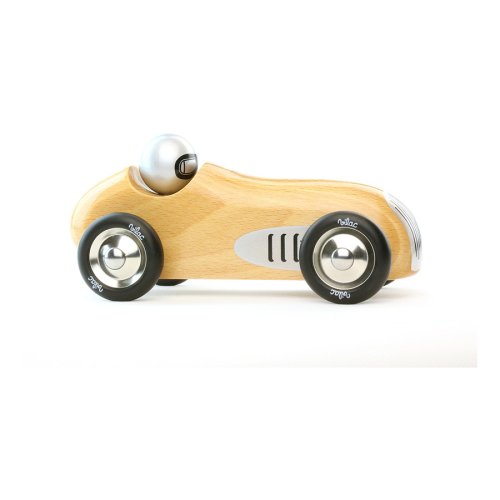 Vintage závodné auto vyrobené z prírodného lakovaného dreva s kovovými pogumovanými kolesami. Je vhodné ako na hranie tak ako dekorácia do izieb detí či dospelých. Vyrobené vo Francúzsku. Hlavné vlastnosti: vyrobené vo Francúzsku