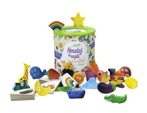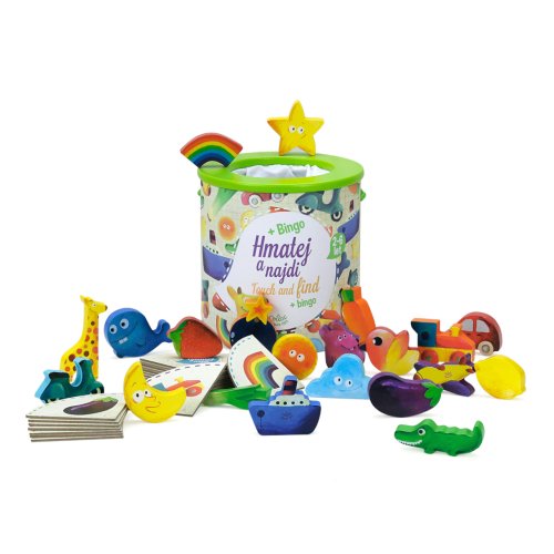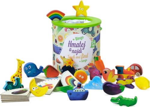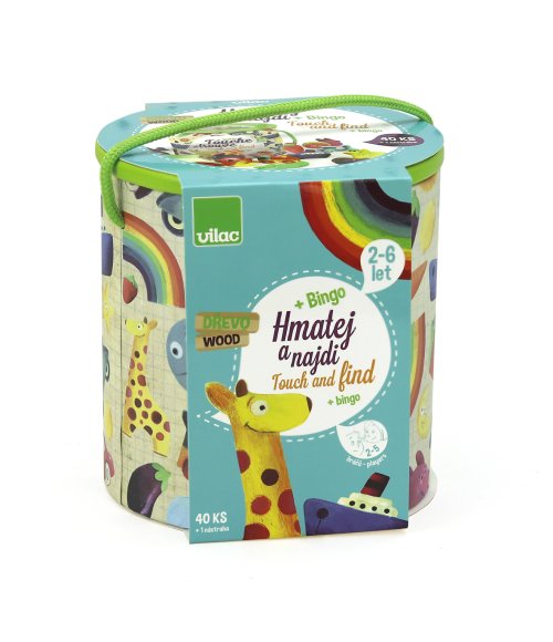 Neprekonaný bestseller Vilac sa originálnym spôsobom snaží rozvíjať často zabúdaný zmysel detí, hmat. Hra je tvorená najmä drevenými figúrkami ukrytými vo vedierku vybavenom vo vnútri jemným látkovým vreckom. Menšie deti majú za úlohu po vložení ruky do tuby len na základe hmatania popísať svojimi slovami, aký predmet drží v ruke. Rodičia môžu postup deťom predviesť názorným príkladom. Staršie deti môžu hrať hru vo forme lota alebo binga, k týmto hrám sú v sade k dispozícii obrázkové karty jednotlivých predmetov. Hlavné vlastnosti: 21 herných dielikov a 20 obrázkových kariet pre 2–5 hráčov rôzne herné varianty praktické balenie Návod na hru: Hmataj a nájdi: Prvý hráč si vezme kartu z kôpky. Potom musí siahnuť do vrecka a podľa hmatu nájsť drevený dielik, ktorý zodpovedá obrázku na karte. Pokiaľ vyberie správny dielik, kartu si ponechá a na rade je ďalší hráč, ktorý opäť začína ťahaním karty z kôpky. Pokiaľ ale prvý hráč vyberie nesprávny dielik, musí svoju kartu odovzdať ďalšiemu hráčovi, ktorý sa musí pokúsiť nájsť správny dielik. Po každom kole sa dieliky vracajú späť do vrecka. Keď už na kôpke nezostáva žiadna karta, určí sa víťaz. Víťazí hráč s najväčším počtom kariet. Pozor! Pokiaľ jeden z hráčov náhodou vytiahne dielik v tvare bomby, musí všetky svoje karty vrátiť na kôpku! Pravidlá môžete upraviť podľa vlastného uváženia, aby sa deti lepšie zoznámili s hmataním a hľadaním predmetov: 1 – Začnite s malým množstvom drevených dielikov.2 – Dovoľte deťom pozrieť sa do vrecka . do vrecka ku.4 - Pridajte do vrecka viac dielikov.5 - Nakoniec, až si deti na hru zvyknú, hrajte podľa tradičných pravidiel. BINGO variant: Rozložte 4 karty do štvorca a vytvorte jedno, alebo viac hracích polí pre každého hráča. Jeden z hráčov, alebo rodič vytiahne dielik z vrecka a vyvolá ho. Hráč, ktorý má kartu zodpovedajúcu tomuto vyvolanému dieliku, si ho vezme a položí na svoju kartičku. Víťazí hráč, ktorý ako prvý zaplní svoje herné pole! Dokumentácia: Návod k hre Hmataj a nájdi (CZ)Návod k hre Hmataj a nájdi (SK)