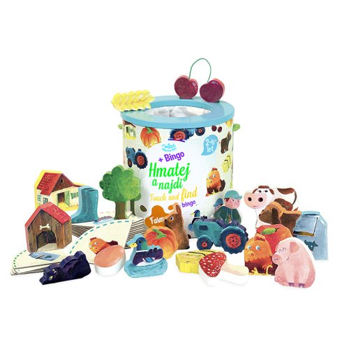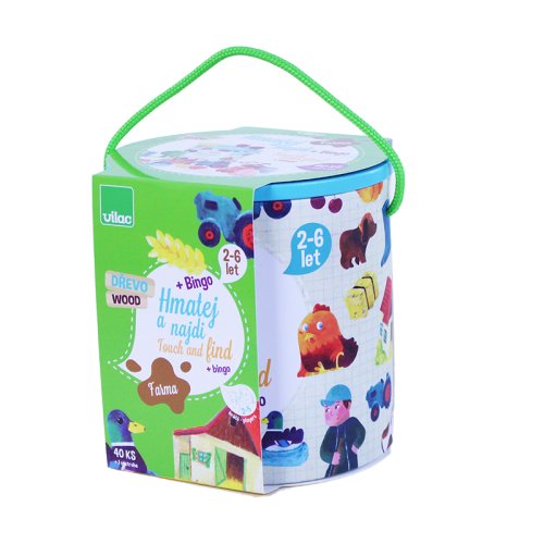 Neprekonaný bestseller Vilac sa originálnym spôsobom snaží rozvíjať často zabúdaný zmysel detí, hmat. Hra je tvorená najmä drevenými figúrkami ukrytými vo vedierku vybavenom vo vnútri jemným látkovým vreckom. Menšie deti majú za úlohu po vložení ruky do tuby len na základe hmatania popísať svojimi slovami, aký predmet drží v ruke. Rodičia môžu deťom predviesť názorným príkladom. Staršie deti môžu hrať hru vo forme lota alebo binga, k týmto hrám sú v sade k dispozícii obrázkové karty jednotlivých predmetov. Hlavné vlastnosti: 21 herných dielikov a 20 obrázkových kariet pre 2–5 hráčov rôzne herné varianty praktické balenie Návod na hru: Hmataj a nájdi: Prvý hráč si vezme kartu z kôpky. Potom musí siahnuť do vrecka a podľa hmatu nájsť drevený dielik, ktorý zodpovedá obrázku na karte. Pokiaľ vyberie správny dielik, kartu si ponechá a na rade je ďalší hráč, ktorý opäť začína ťahaním karty z kôpky. Pokiaľ ale prvý hráč vyberie nesprávny dielik, musí svoju kartu odovzdať ďalšiemu hráčovi, ktorý sa musí pokúsiť nájsť správny dielik. Po každom kole sa dieliky vracajú späť do vrecka. Keď už na kôpke nezostáva žiadna karta, určí sa víťaz. Víťazí hráč s najväčším počtom kariet. Pozor! Pokiaľ jeden z hráčov náhodou vytiahne dielik v tvare muchotrávky, musí všetky svoje karty vrátiť na kôpku! Pravidlá môžete upraviť podľa vlastného uváženia, aby sa deti lepšie zoznámili s hmataním a hľadaním predmetov: 1 – Začnite s malým množstvom drevených dielikov.2 – Dovoľte deťom pozrieť sa do vrecka . do vrecka ku.4 - Pridajte do vrecka viac dielikov.5 - Nakoniec, až si deti na hru zvyknú, hrajte podľa tradičných pravidiel. BINGO variant: Rozložte 4 karty do štvorca a vytvorte jedno, alebo viac hracích polí pre každého hráča. Jeden z hráčov, alebo rodič vytiahne dielik z vrecka a vyvolá ho. Hráč, ktorý má kartu zodpovedajúcu tomuto vyvolanému dieliku, si ho vezme a položí na svoju kartičku. Víťazí hráč, ktorý ako prvý zaplní svoje herné pole! Dokumentácia: Návod k hre Hmataj a nájdi farma (CZ)Návod k hre Hmataj a nájdi farma (SK)