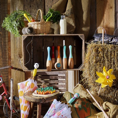 Sada 6 kolkov z lakovaného dreva. Kolky sú napoly prírodné a napoly farebné. V praktickom balení nájdete aj 2 drevené gule. Zabalené v bavlnenom vrecúšku. Vyrobené vo Francúzsku. Hlavné vlastnosti: vyrobené z odolného dreva balené v praktickom látkovom vrecúšku obsahuje 6 kolkov a 2 hracie guľavy vyrobené vo Francúzsku