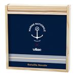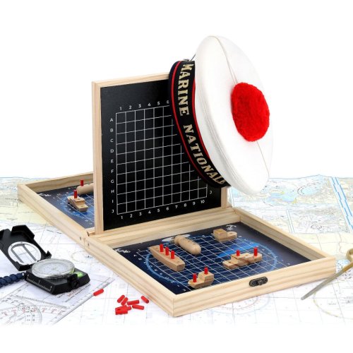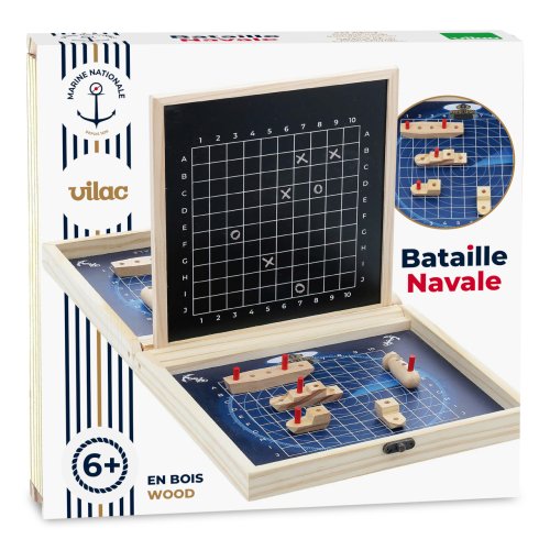 Klasická strategická hra v prenosnom drevenom kufríku, s motívmi francúzskeho námorníctva môže deťom pomôcť zábavnou formou rozvíjať poznávacie schopnosti. ktorej povrch je prispôsobený na písanie kriedou. Kriedy sú súčasťou balenia a slúžia hráčom na zaznamenávanie vývoja hry. vždy ľahko upratať a môže deti sprevádzať na cestách. Rozmery balenia: 26 x 27 x 5 cm Rozmery: 52 x 25 x 26 cm Vek: 6+ Materiál: drevo, látka, krieda Obsahuje: 10 lodí, 40 tyčiniek, 2 vrecká a 2 kriedy