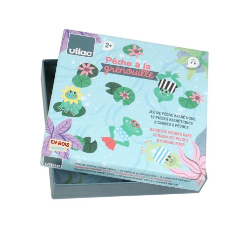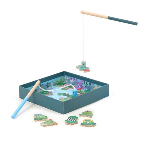 Rybárčenie s rybičkami? To vie každý. Buďte originálni a naučte sa rybárčiť so žabkami od ilustrátorky Michelle Carlsund. K dispozícii je celkom 12 roztomilých žiab, každá v inom tvare aj farebnom dizajne. Chyťte ich všetky! Každá žabka má na zadnej strane rôzny počet bodiek, ktoré označujú body. Pri hre teda nezáleží na tom, koľko žiab hráč vytiahne, ale nakoniec sa na už vytiahnutých žabkách spočítajú body a vyhráva ten, kto má bodov viac. Hra stimuluje kognitívny vývoj vášho dieťaťa. Rozvíja koordináciu ruka-oko a jemnú motoriku. Podporuje aj zmyslové a vzdelávacie učenie. Žabky sú uložené v krabičke, ktorá sa otvorením premení na hernú základňu. Hra obsahuje: 12 drevených magnetických žiab, 2 drevené prúty s magnetom a 1 hernú krabičku/základňu. hernú základňu • vhodné od 2 rokov