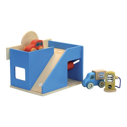 V roztomilej malej garáži bude o autíčka vždy príkladne postarané! Je tu možné svoje vozidlo natankovať, umyť alebo zaparkovať na streche. Vďaka posuvným dverám umývačky, kefu a odnímateľnej pištoli pumpy sa deti môžu do svojich fantastických hier naplno ponoriť a užiť si pocit ako pri starostlivosti o skutočné auto. Súčasťou balenia je dvojica rôznych autíčok, je možné sa tak začať hrať bezprostredne po rozbalení. Hračka vyniká vybranou farebnosťou, vďaka ktorej vkusne doplní interiér detskej izbičky. Neváhajte a doplňte ju ďalej o Trajekt Vilacity, s ktorým tvorí harmonickú kolekciu. Vyrobené z odolného masívneho dreva a silnej preglejky . Hlavné vlastnosti: garáž, pumpa a 2 autíčka posuvné dvere a kefa umývačkyjedinečný designrobustné a odolné prevedenie