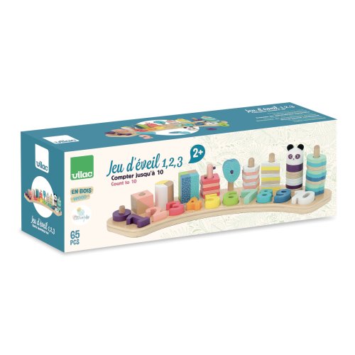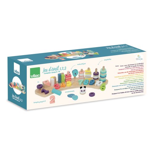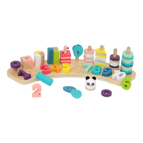 Pomocou jednoduchej skladačky môžu deti spoznávať čísla a ich význam utváraním spojitostí medzi zrakom a motorikou. Na jej návrhu sa podieľali odborníci a je vytvorená tak, aby deti jednotlivé vzťahy mohli objavovať prirodzene a samostatne v súlade s praxou výukových metód Montessori. Triedenie rozmanitých, atraktívnych farieb, vzorov a tvarov pomáha deťom rozvíjať sústredenie a celú škálu poznávacích schopností. Starostlivo opracované, pevné a odolné drevo, z ktorého je hračka vyrobená, pri hre jemne rozvíja a stimuluje hmat. Hlavné vlastnosti: základňa, 65 vkladacích a nasadzovacích dielikov vedie k samostatnému objavovaniu a poznávaniu atraktívny dizajn a spracovanie