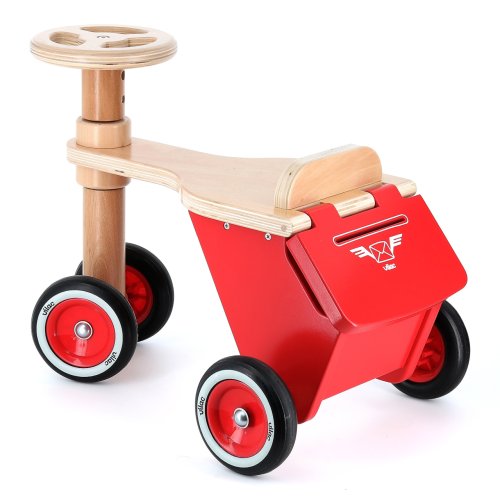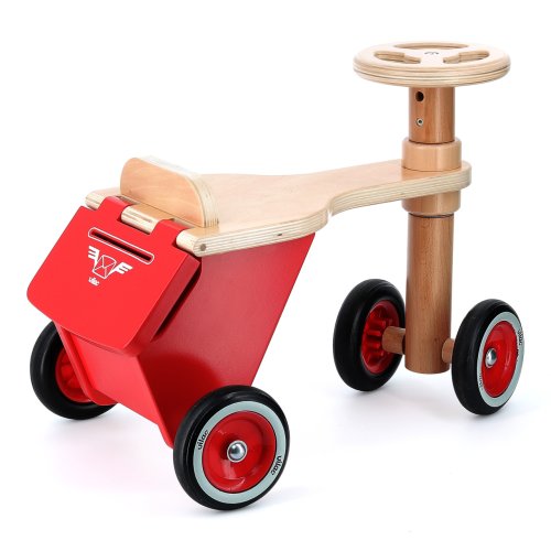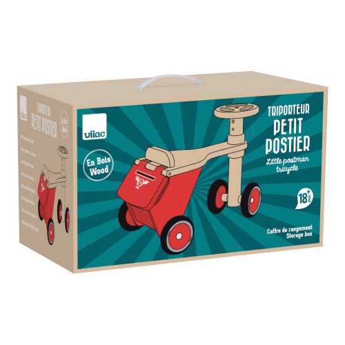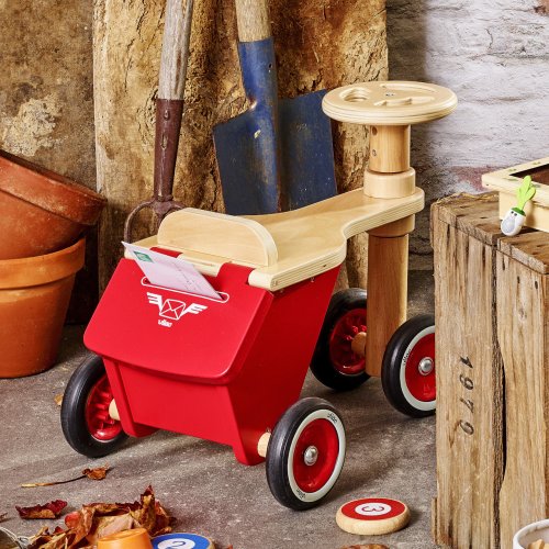 Každý poštár bude ticho závidieť! Atraktívne a prepracované odrážadlo je v zadnej časti vybavené kufríkom s odklopným vekom a štrbinou, kam je možné vhadzovať napríklad prvé maľovky. Ponúka však dostatok priestoru, aby mohli najmenší na cestu so sebou zobrať aj obľúbené plyšové zvieratko. Vozítko vyniká výnimočne robustnou konštrukciou využívajúcou silnú preglejku aj diely z masívneho dreva. Uhol otáčania jeho volantu je obmedzený tak, aby bola zaručená stabilita a nehrozil pád dieťaťa. Plastové kolesá sú opatrené odolnými pneumatikami, ktoré tlmia hluk a zároveň zlepšujú jazdné vlastnosti. Bezpečnosť odrážadla bola aj laboratórne overená, Vaši najmenší tak môžu bez obáv vyraziť za dobrodružstvom. Výrobok vyžaduje montáž, dodávané s obrázkovým návodom na zostavenie. Hlavné vlastnosti: úložný kufríktichý a kultivovaný chodjedinečný dizajn a spracovanie robustná a stabilná drevená konštrukcia