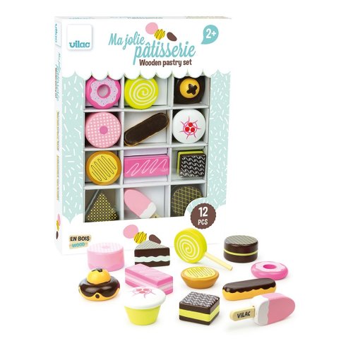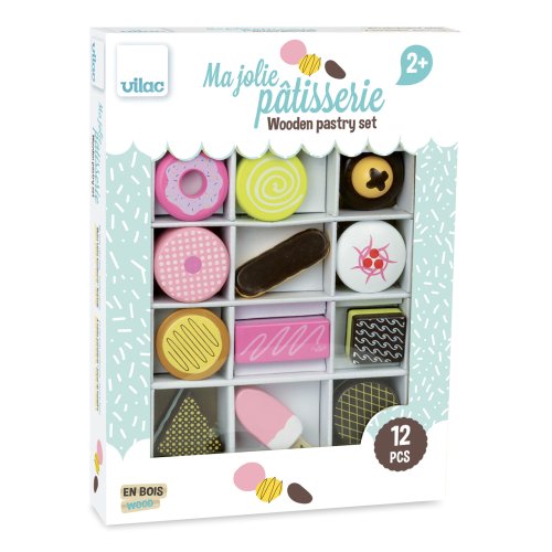 Tak ako naozajstné sladkosti, aj tieto drevené vyzerajú veľmi chutne. Balenie obsahuje 12 ks zákuskov a sladkostí. Hlavné vlastnosti: vhodné do každej detskej kuchynky obsahuje 12 ks