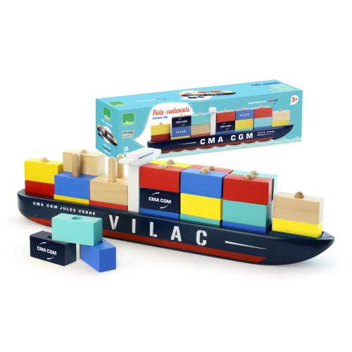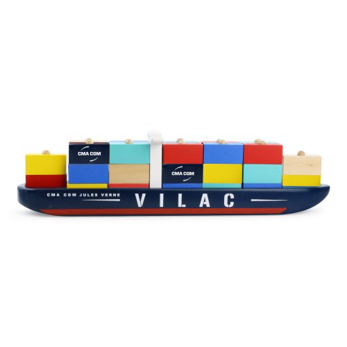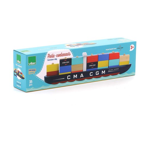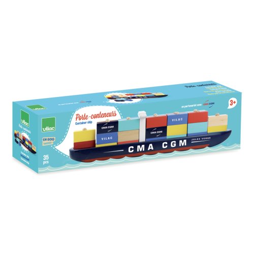 Celodrevená kontajnerová loď Jules Verne CMA CGM. Naložte loď kontajnery a pripravte ju na vyplávanie. Hračka je vhodná aj ako dekorácia. Obsahuje 35 dielikov. Hlavné vlastnosti: obsahuje 35 dielikov precvičuje jemnú motoriku detí vhodná aj ako dekorácia